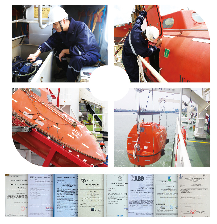 The lifeboat service department was established in 2006, as the service supplier has been approved by classification society such as DNV-GL, LR, NK, KR, BV, ABS, OCS, RINA, CR and flag state such as Panama. Now we have 26 professional service engineers with fully experience, gives more than 1000 vessels lifeboat service each year.