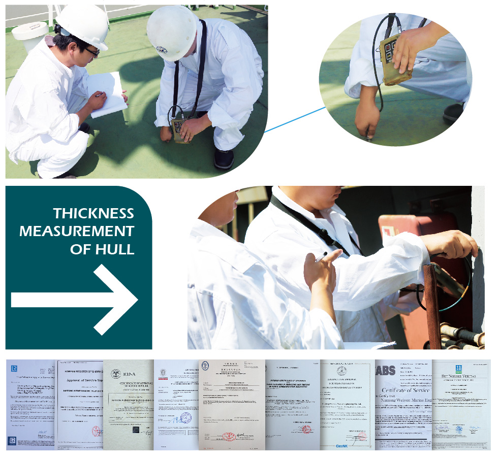 1、船體測厚,根據(jù)各船級社的規(guī)范要求,提供各類船型的測厚服務(wù),憑借豐 富的專業(yè)知識和經(jīng)驗(yàn),為船東的船舶修理提供客觀規(guī)范的數(shù)字依據(jù)和技術(shù)支持。